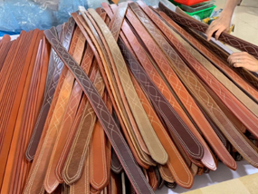 近年来,公司实现了由原皮制革向产品多元化的转型升级,集男女真皮腰带、PU带、手袋配件、手腕带、宠物带、手机套、皮具装饰品,皮带,钥匙扣,成衣带,皮具,相机带,宠物牵引绳,裤链,家具配件,皮牌等多项产品生产、加工为一体,满足客户多元化生产、销售需求。